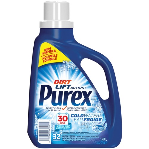 Purex Cold Water liquid laundry detergent. Saves energy and money. doesn’t skimp on clean. Ideal for everyday use and can be found at an affordable price. Specially formulated liquid laundry detergent for a powerful clean in cold water. Washing in cold water helps you conserve energy and save money on your hot water bill. It has powerful dirt lift action to act as a stain remover for clothes and provides up to 36 loads of laundry in each bottle. This concentrated laundry detergent delivers more clean, brightness, whiteness and freshness for clothes with less detergent needed. It is safe to use in both top loader washing machines and front loader washing machines, along with any high efficiency or standard washers. PUREX: THE SMART WAY TO DO LAUNDRY Key Benefits: 4 in 1 Capabilities: Powerful Clean, Tough on Stains, Lasting Freshness, and Brightening & Whitening Helps save energy and money Fragrance technology delivers 30 Days of long lasting freshness Concentrated cleaning power Safe in all washing machines 36 washloads How to Use: Follow washing machine instructions for adding liquid detergent. For regular loads: Fill cap to Level 1 Use more detergent for heavily soiled or larger loads. vs. washing in warm water